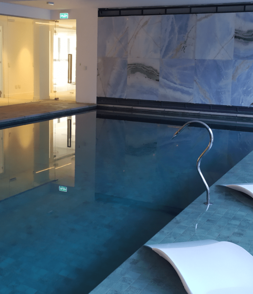 Se pensó en el complemento ideal para sumar a los amenities del complejo Greenpark, una piscina de líneas simples, pero con detalles que realzan un diseño de vanguardia.